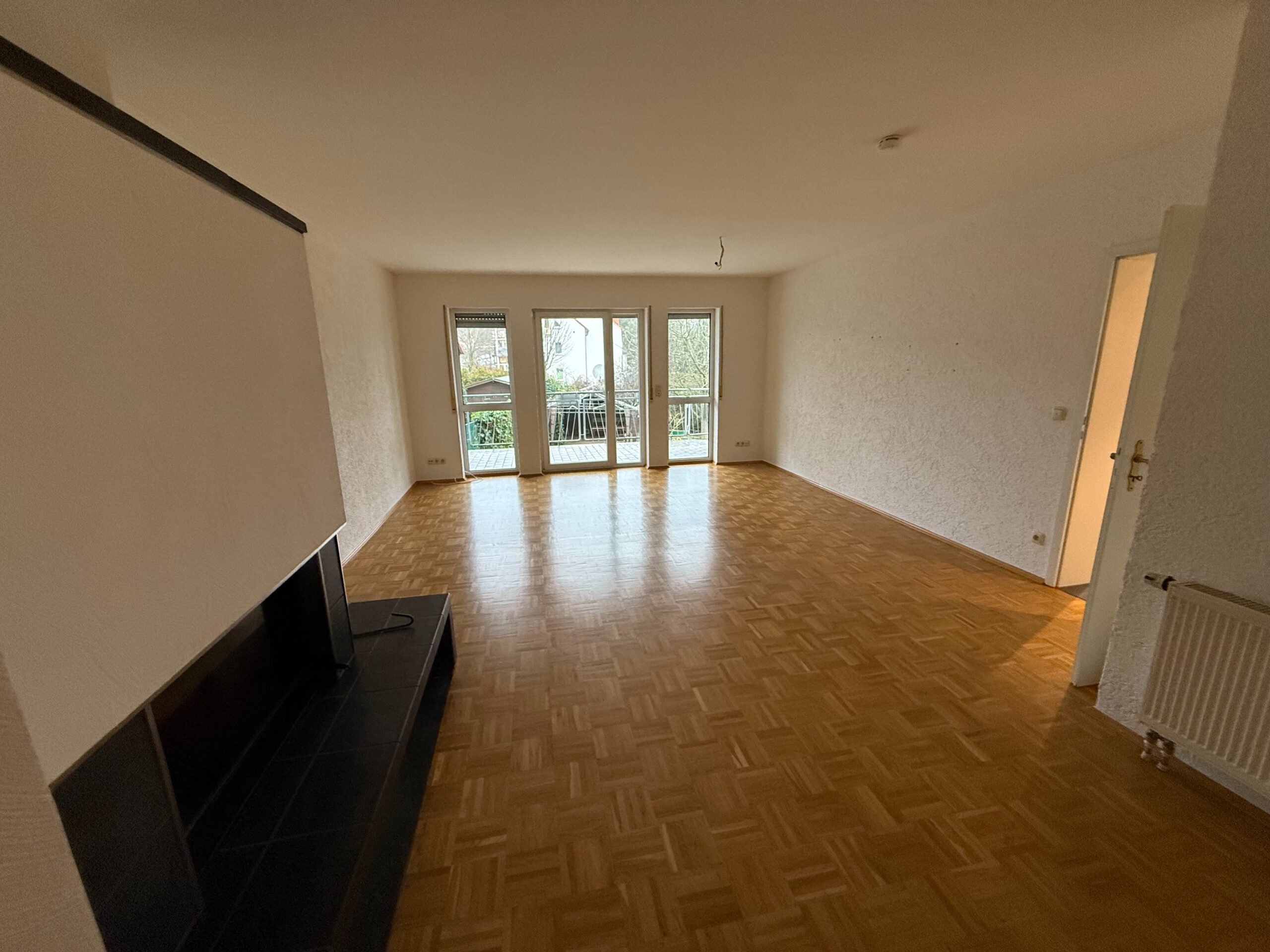 Der Blick von dem großen Balkon in den schön angelegten Garten wird Sie erfreuen. Der Wohnung ist ein großzügiger Gartenanteil zugewiesen. Hier können Sie sich abends schön entspannen. Im Wohnzimmer befindet sich für kuschelige Abende ein Kamin.